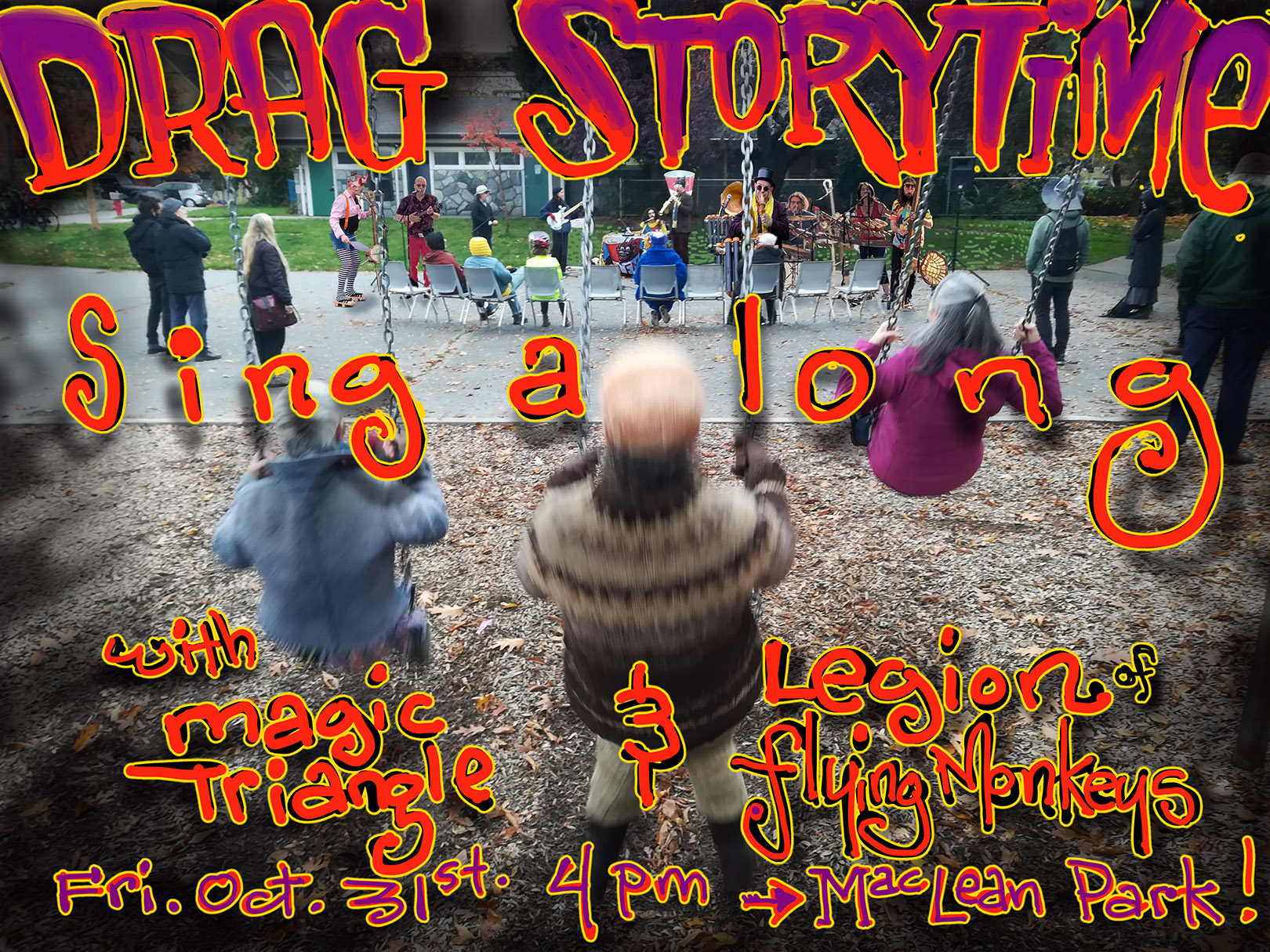 Come to the Park and dance in your costumes to the high-energy jazz stylings of Magic Triangle, then join up for lifetime membership in the completely harmless* singalong corporation of the Legion of Flying Monkeys.
