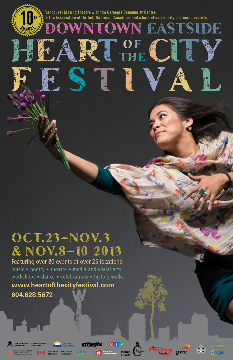 Vancouver Moving Theatre in association with Carnegie Community Centre & the Association of United Ukrainian Canadians presents The 10th Annual Downtown Eastside Heart of the City Festival Wednesday October 23 to Sunday November 3, 2013 Celebrating our 10th Anniversary Featuring…